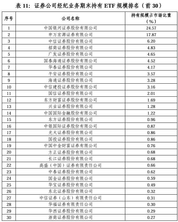 和3月相比,券商经纪业务ETF保有规模的前30强名单并没有发生大的变化,只是个别券商的排名稍有调整。