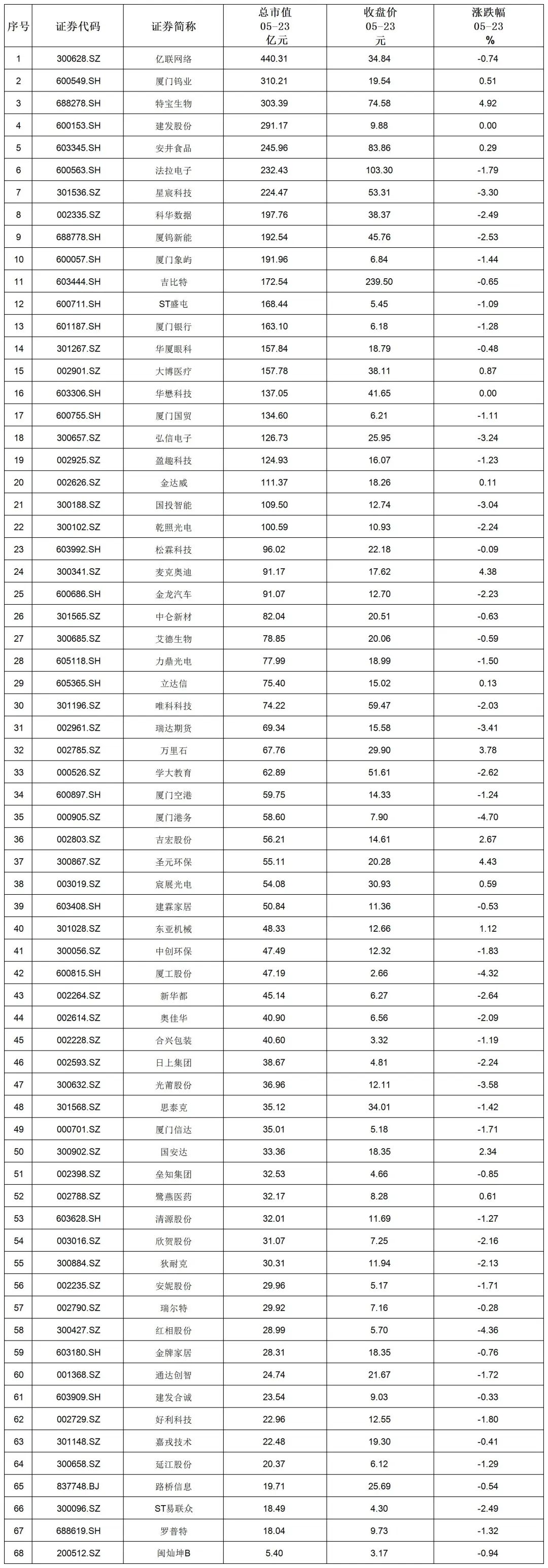 5月23日,上证综指下跌31.82点,跌幅0.94%,收盘于3348.37。辖区内上市公司总计68家,总市值6442.00亿元。