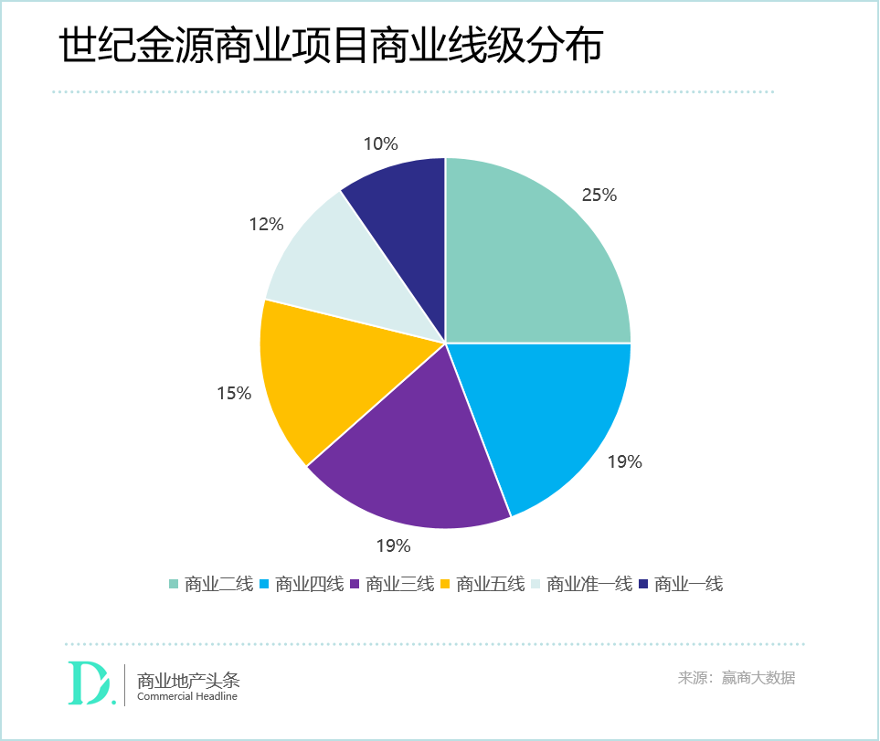 分城市线级看,大部分项目位于商业二线及以下城市,其中位于商业二线城市的项目有25%,而位于商业一线及准一线的分别只有10%和12%。