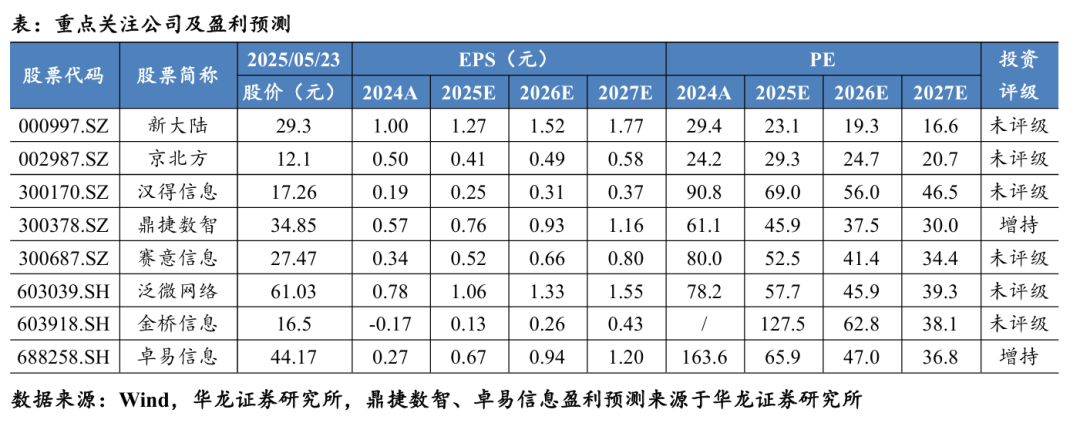 投资建议:大厂积极推进AI布局,Agent助力AI应用能力拓展,垂类AI应用有望加速下沉,建议关注垂类AI应用相关标的,维持计算机行业“推荐”评级。建议关注:卓易信息(688258.SH)、鼎捷数智(300378.SZ)、赛意信息(300687.SZ)、汉得信息(300170.SZ)、新大陆(000997.SZ)、京北方(002987.SZ)、泛微网络(603039.SH)、金桥信息(603918.SH)。