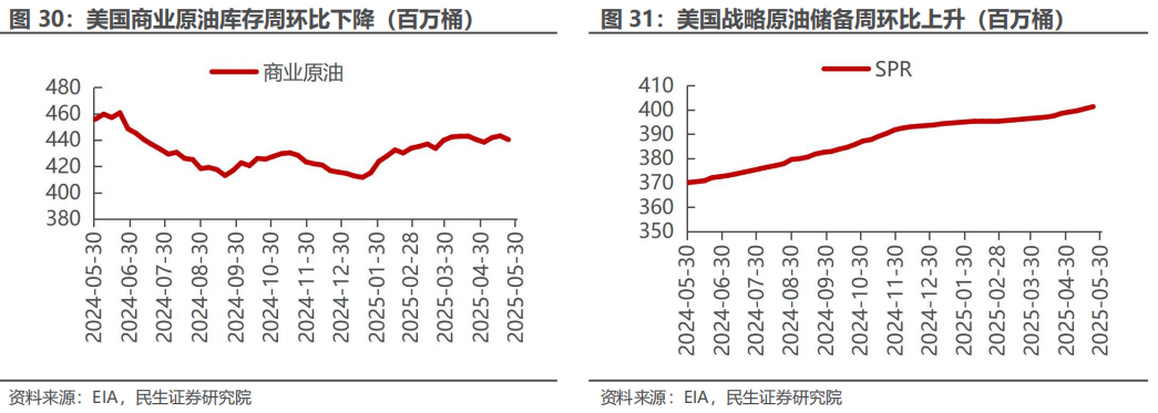 据Bloomberg 5月30日的统计数据,2025年4月海运出口:沙特179百万桶,同比下降14.7%,环比下降6.0%;俄罗斯149百万桶,同比上升15.6%,环比上升14.0%;美国113百万桶,同比上升4.8%,环比下降6.5%;伊拉克116百万桶,同比上升8.3%,环比下降2.2%。