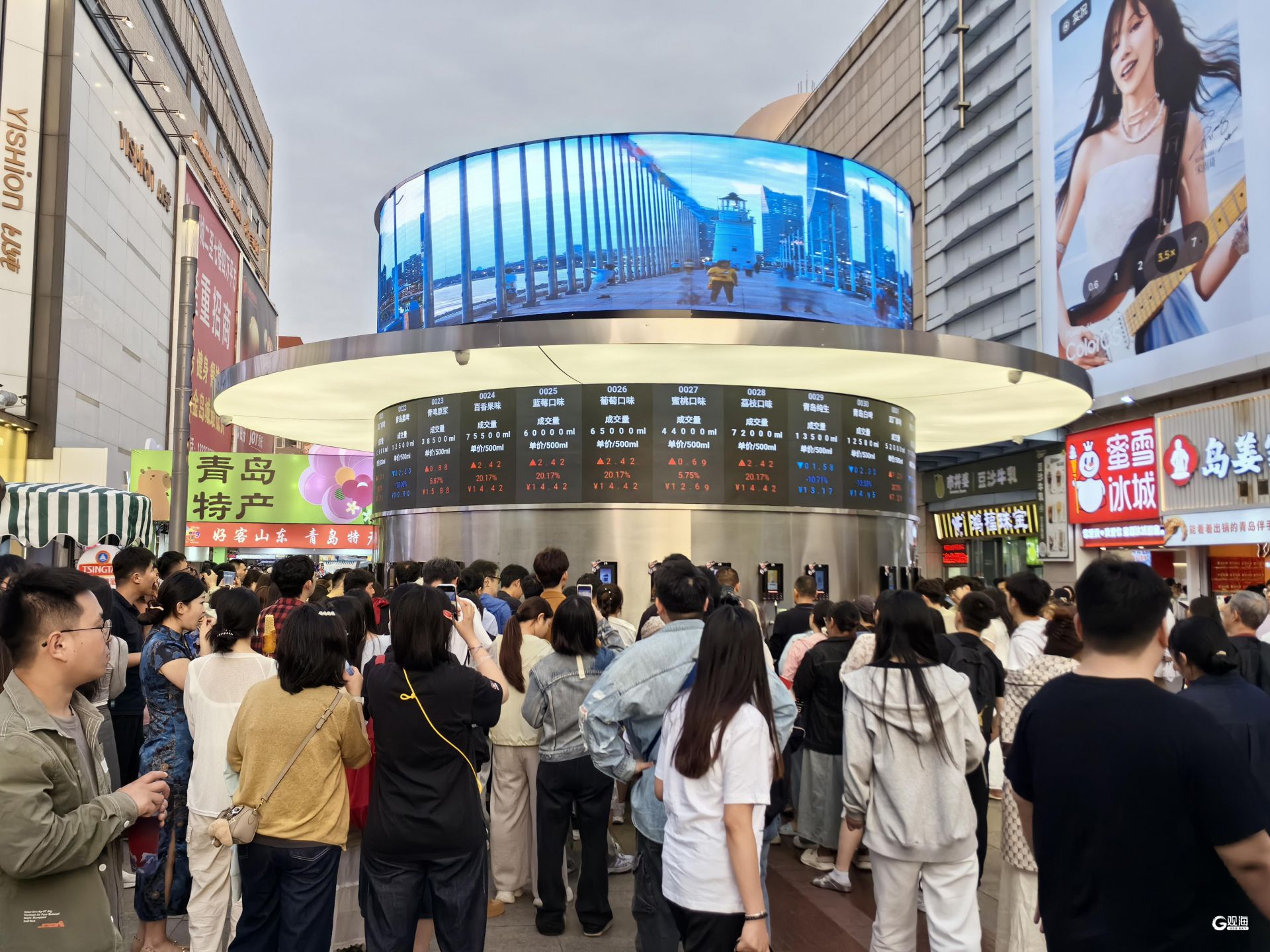 这个充满金融趣味的啤酒消费新场景,灵感源于一次考察。“我们在外调研时看到了自助打酒机,觉得它打酒方便,但趣味性不足。我们经过讨论,觉得可将它改造一下,放到青岛的一个人流量大的地方,让它与青岛的啤酒元素相互融合,产生共鸣。”李潮介绍,团队随后创新融合了类似“股票交易所”的互动模式,并结合青岛本土特色,最终诞生了这款独特的圆柱形、360度环绕的“啤酒交易所”形态。“我们大约是今年4月份敲定的方案,然后用了25天左右时间设计、开工,赶在端午节假期将它推出。建成后,它直观的环形屏幕和实时跳动的数据,营造出强烈的交易所沉浸感,让消费者自然代入‘操盘手’角色。”李潮说。