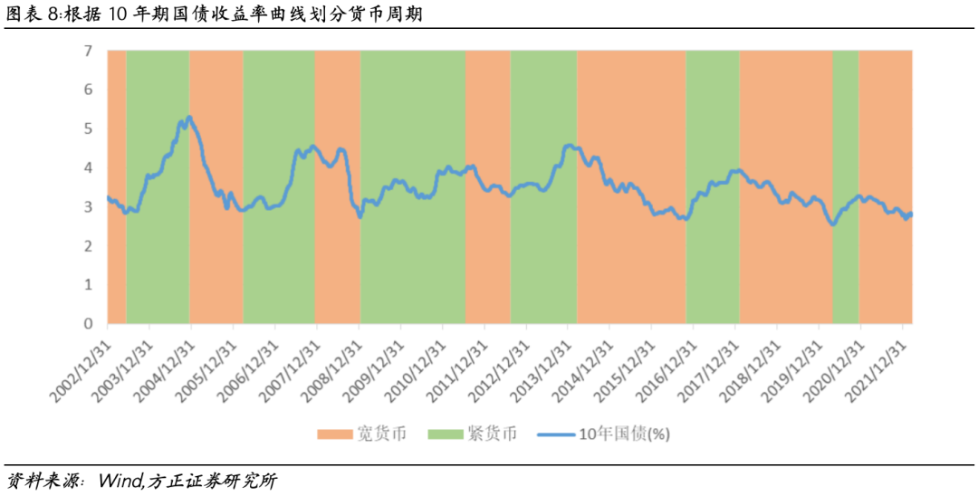 “货币+信用”框架中,货币对应的是货币政策工具,代表了资金供给,而信用则代表了资金需求。其中,货币政策的切换最终会反映到市场利率的变动,因此我们可以通过观察10年期国债收益率对货币政策周期进行划分。