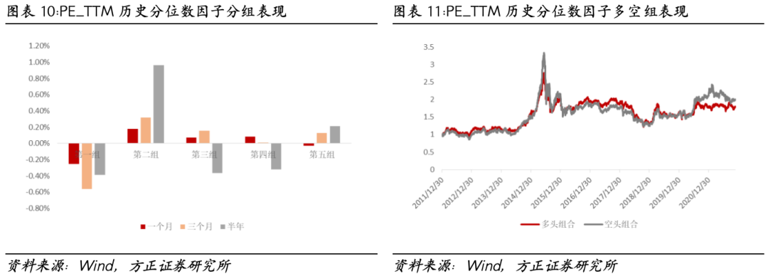 不论在A股市场还是海外市场,个股层面估值因子都具备长期有效性,低估值的股票相比于高估值股票具备明显的超额收益。但是在行业/指数层面来看,估值因子的表现却相对较差,以行业指数为例,我们按照估值分位数因子将各行业由小到大分为五组,以观察各组未来一段时间的平均表现,从结果来看,高/低估值组别表现基本接近,并没有明显的分化。