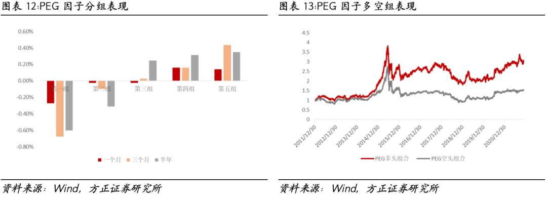 虽然短周期内估值本身不具备区分能力,但如果考虑了行业未来成长能力的PEG指标,却有较好的区分能力。我们使用行业的最新估值水平(PE_TTM)和分析师一致预期未来两年复合增速(G)来构建PEG指标,由于利润增速可能为负数,此处我们使用PEG的倒数进行分组测算,可以看到PEG的倒数具有较好的行业分组能力,各组别单调性相对较好。
