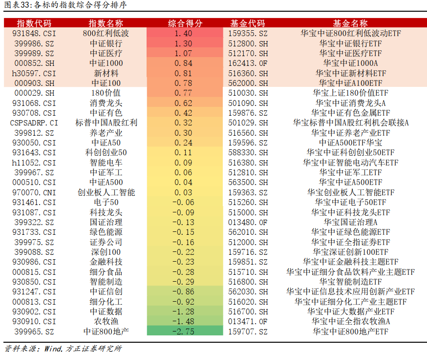 本报告中涉及到的具体指数基金如800红利低波ETF、银行ETF、医疗ETF、中证1000基金、新材料ETF、中证A100ETF等产品均为华宝基金旗下产品,华宝基金管理有限公司目前是方正证券研究业务的签约客户。