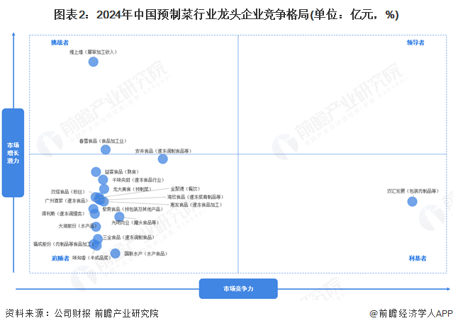 注:1)横坐标为2024年企业预制菜业务营收规模(仅披露半年报的以两倍折算),纵坐标为营收同比增长幅度(以最新披露业务财报数据计);2)此处仅列示有明确披露预制菜业务营收情况的企业,各别企业存在上下游产业链整体布局规模较大的情况,但预制品制作相关业务营收规模较小,此处仅供参考。