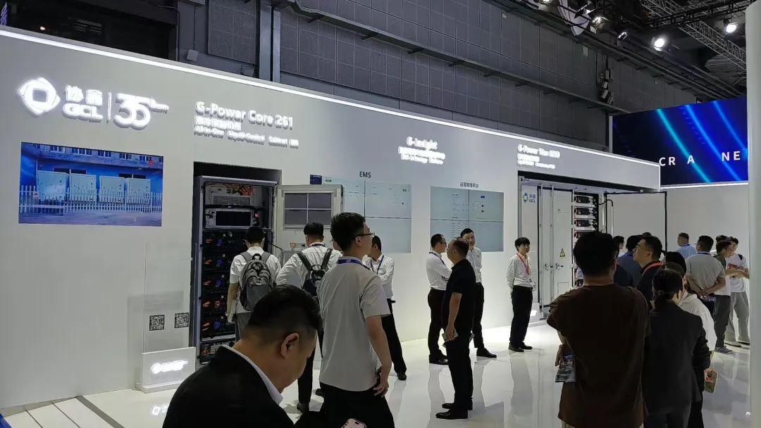 本次协鑫储能重点展示了包括6.25MWh集装箱储能系统、135KWh/261kwh All-in-one储能柜,以及AI+能源管理运营策略平台在内的多项储能产品。