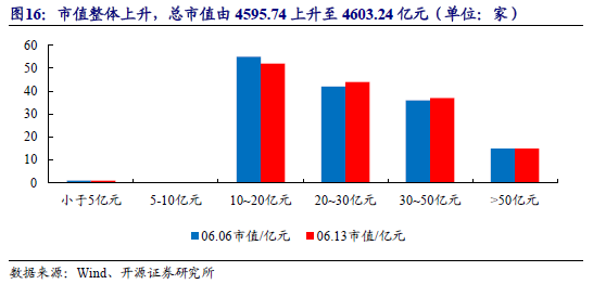 2025年6月9日至2025年6月13日,149家企业的市值整体上升,总市值由4595.74上升至4603.24亿元,市值中值由22.97下降至22.59亿元。