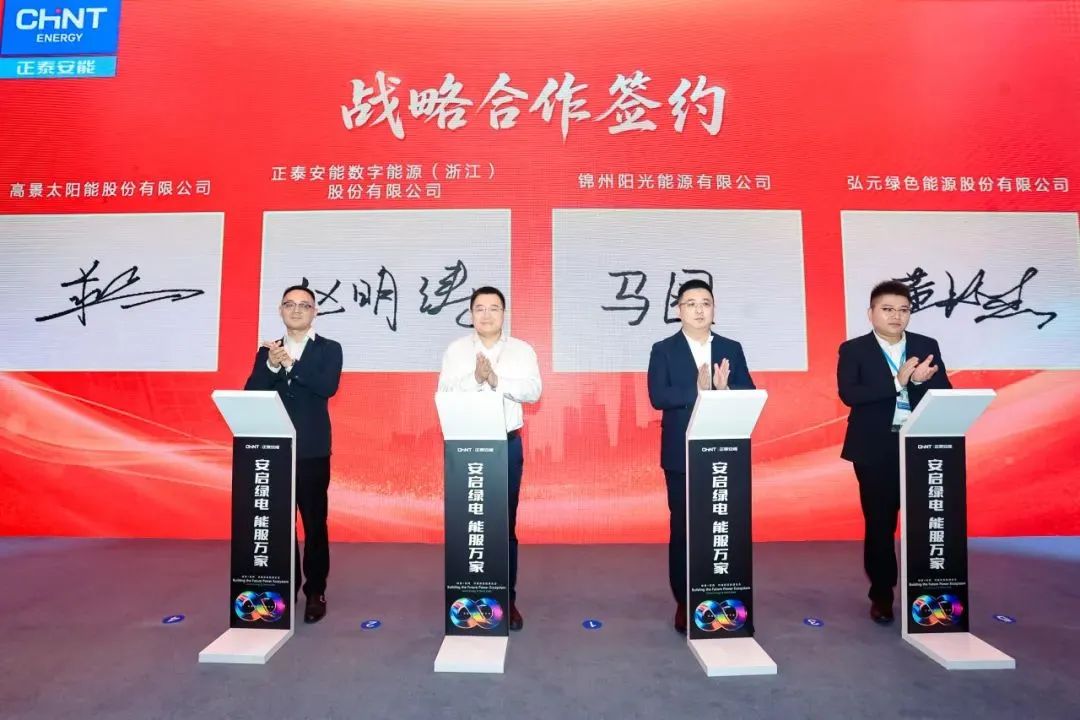 6月11日下午,正泰安能与锦州阳光能源有限公司、高景太阳能股份有限公司、弘元绿色能源股份有限公司签订合作协议。