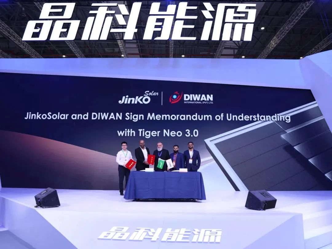 6月12日,在SNEC 2025光伏展期间,晶科能源分别与中国电建,以及DIWAN International、Mesol Solar、Salim Winding三家海外企业达成战略合作,围绕新一代N型TOPCon组件Tiger Neo 3.0的全球化应用展开深入布局。其中,中国电建将与晶科能源合作,供应总量达1.75GW的N型TOPCon组件,用于沙特SPPC第五期光伏项目建设。