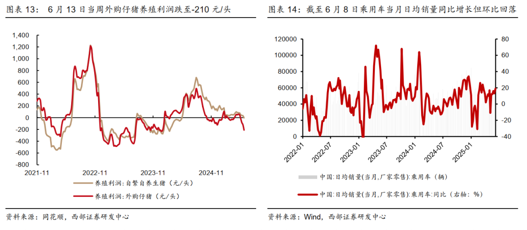 本周宏观高频数据大体平稳。截至6月13日当周,中东地缘局势升级推高油价,ICE布油期货周涨13%,COMEX黄金价格亦上涨并突破3400美元/盎司关口。6月“抢出口”趋势延续,出口运价冲高后环比回落;PTA开工率维持震荡偏强。内需方面,汽车销量维持较高活跃度;猪肉养殖利润进一步下探,6月9日华储网公告于6月11日开展中央储备冻猪肉收储。