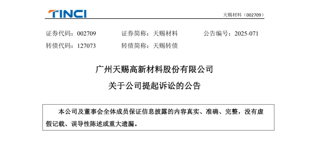 7月2日晚,天赐材料发布公告称,其全资子公司九江天赐高新材料有限公司作为原告向江西省高级人民法院提起商业秘密侵权纠纷民事诉讼,诉讼赔偿经济损失达人民币8.87亿元,江西省高级人民法院已于近日立案受理。