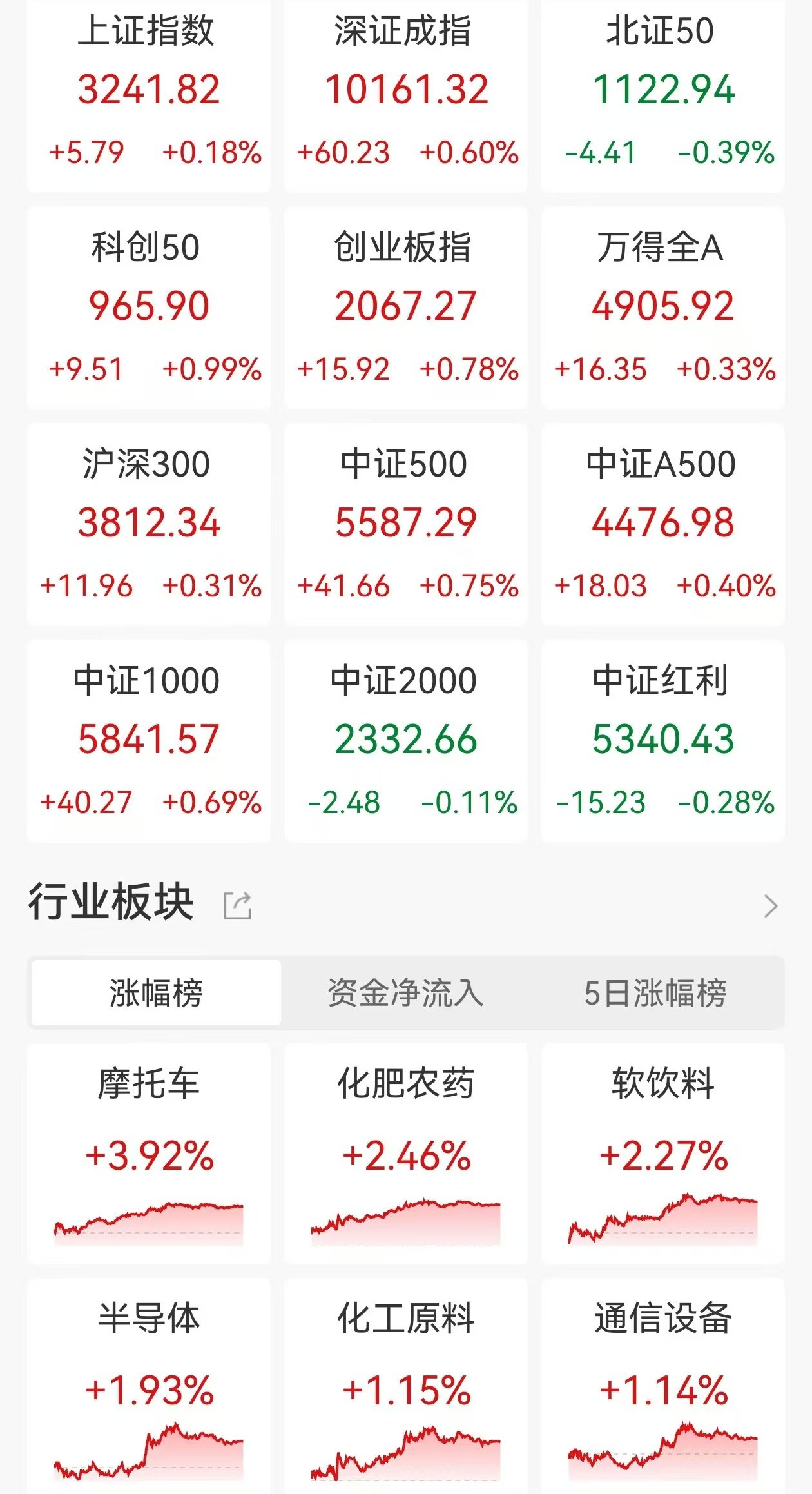 2024年中国GDP同比增长5%,A股主要指数今日小幅走高,截至收盘,沪指涨0.18%报3241点,深证成指涨0.6%,创业板指涨0.78%。全天成交1.15万亿元,较前一交易日缩量1419亿元,全市场超2600股上涨。