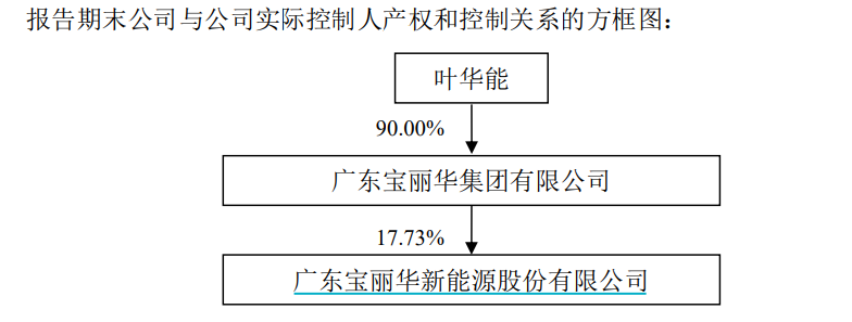 公开资料显示,1993年6月,叶华能创办广东宝丽华集团公司。1997年,宝新能源成功在深圳证券交易所上市。1997年1月至2000年9月,叶华能任宝新能源董事长。2005年7月,广东宝丽华集团公司整体改制为广东宝丽华集团有限公司。截至2023年末,叶华能持有广东宝丽华集团有限公司90%的股份,为该公司董事局主席。