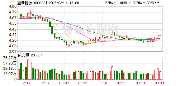 截至3月14日收盘,宝新能源报4.31元/股,总市值近100亿元。