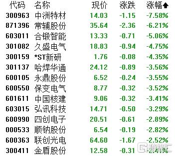 另外,贵金属板块回撤,西部黄金跌超6%;可控核聚变板块回调,合锻智能(维权)领跌;军工装备、电力、可燃冰及CRO等板块跌幅居前。