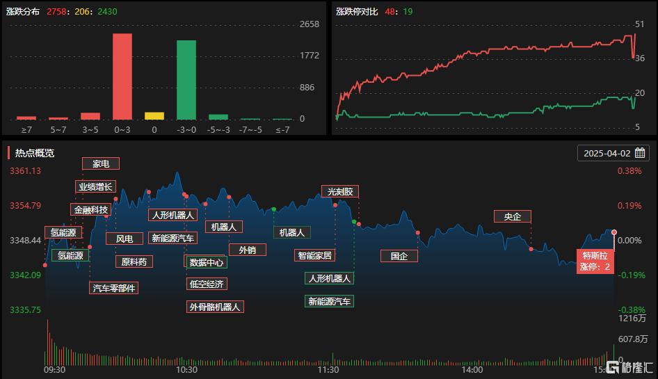 4月2日,A股主要指数小幅上涨,沪指涨0.05%报3350点,深证成指涨0.09%,创业板指涨0.13%。