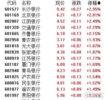 银行股集体上涨,长沙银行涨近3%,北京银行、江阴银行、交通银行、齐鲁银行等跟涨。