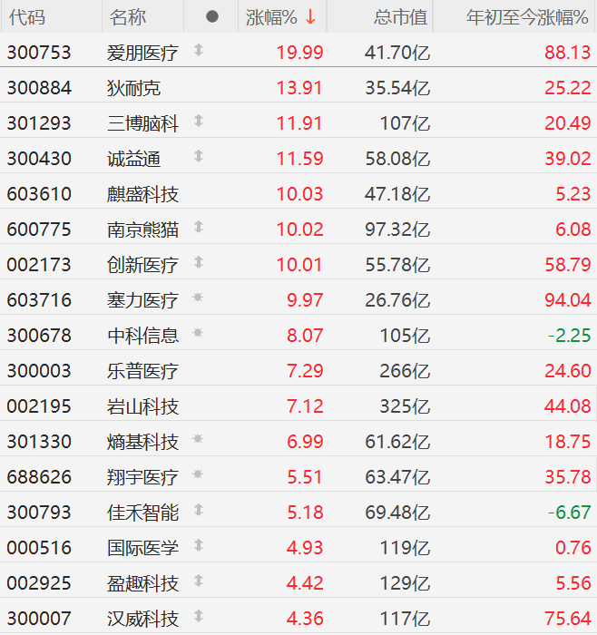 格隆汇6月17日|美股脑再生科技隔夜暴涨283.13%,带动A股市场脑机接口概念股集体走高,其中,爱朋医疗20CM涨停,狄耐克涨近14%,三博脑科、诚益通涨超11%,麒盛科技、南京熊猫(维权)、创新医疗、塞力医疗(维权)10CM涨停,中科信息、乐普医疗、岩山科技、熵新科技、翔宇医疗、佳禾智能等跟涨。