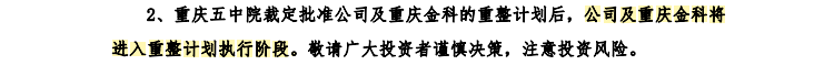 *ST金科在公告里表示,其下一步要干的事就是,执行重整计划——如果在执行阶段出了问题,那之前所做的一切都是白费,公司还是要走向破产清算。