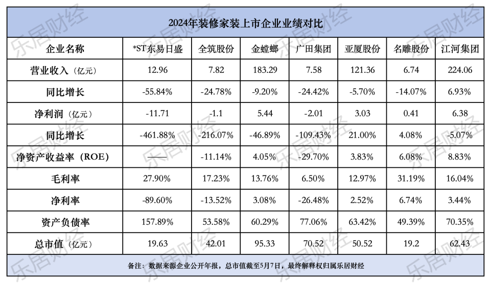市场规模不小,那么身处其中的家装公司日子过得怎样?随着各企业2024年财报的陆续出炉,乐居财经对7家已上市的家装企业的业绩进行了对比和分析。