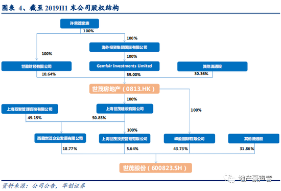 截至2019H1末,公司由创始人许荣茂控股68.64%,2020年1月配股后许荣茂持股66.46%;并且公司控股世茂股份70.14%(截至2020年2月27日),股权结构稳定。2011年9月,许世坛(许荣茂之子)任公司执行董事,开始掌管公司;2019年1月,许世坛接任公司总裁,并继续担任执行董事及副主席,正式全面掌舵世茂房地产。许世坛接任后,先后引入了一批来自龙湖、中海等标杆房企的职业经理人加盟公司,并逐步从内部培养出一批优秀的年轻高管。