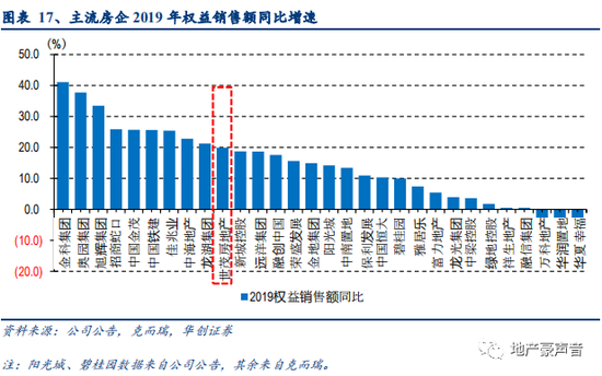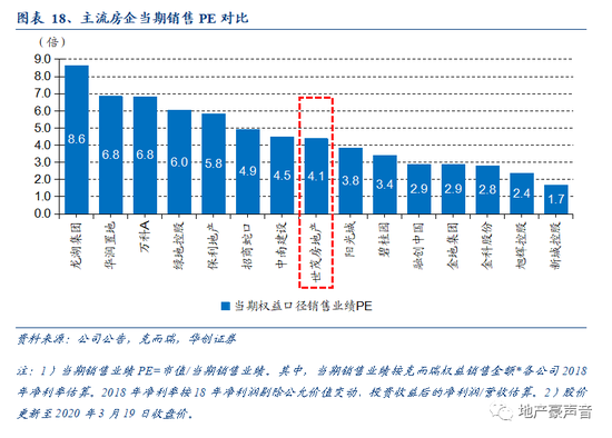 以克而瑞公布的权益销售额来看,公司2019年权益比例70%,权益销售额增速20%,位于主流房企中上水平。从当期销售业绩PE来看,公司2019年的4.1倍处于主流房企中等水平。