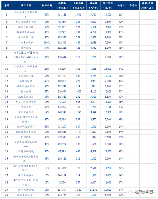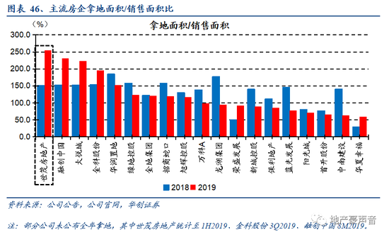 注:部分公司未公布全年拿地,其中世茂房地产统计至1H2019、金科股份3Q2019、融创中国8M2019。