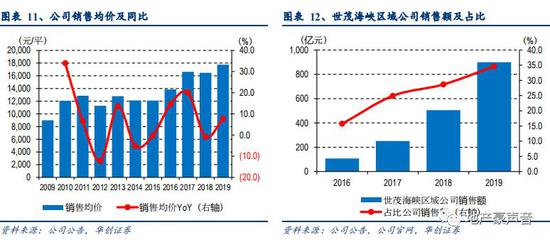 两次变革后,2017年公司重提千亿销售计划,当年新进4个城市;2018年开始公司推出新的管理架构,对区域公司充分授权+激励;并且鼓励区域公司适度竞争,集团根据利润率、IRR、现金流转正时间等指标进行区域授权考核,当年即走出了世茂海峡公司这一“国内第一地区公司”。2018年海峡公司销售额505亿、同比翻倍,并且占比公司销售额的29%。并且,2019年海峡公司销售额达到900亿、再次近翻倍,占比35%。
