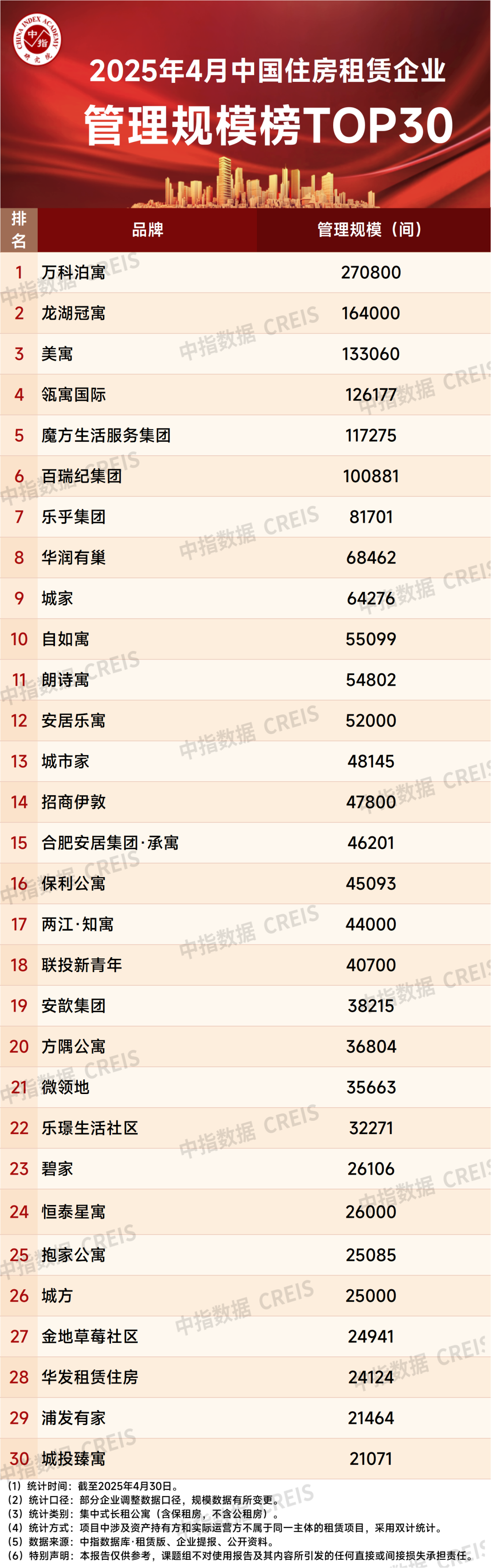 管理规模榜:TOP30企业累计管理房源量提升至189.7万间