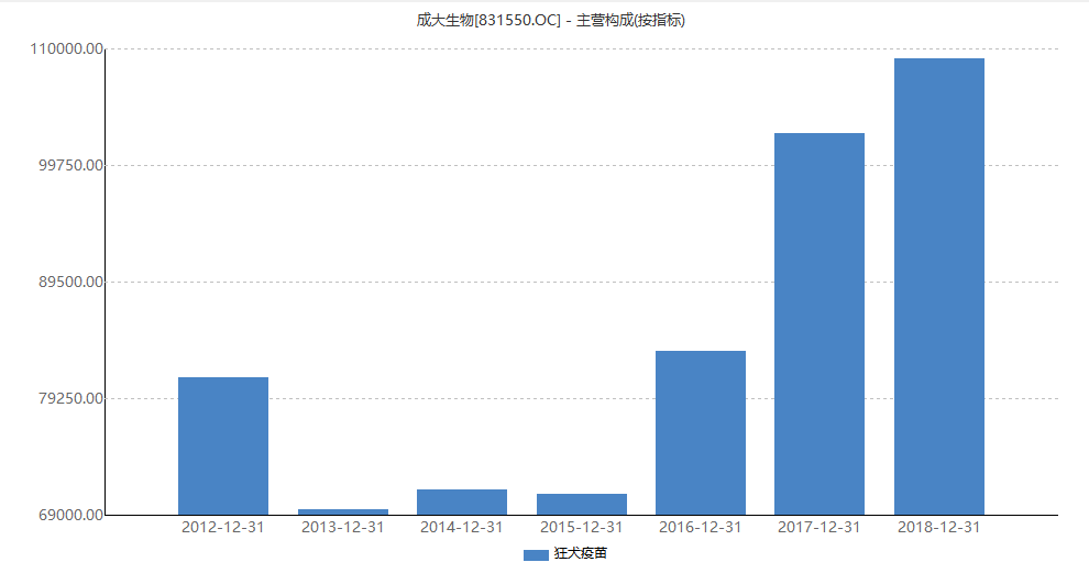 数据显示,成大生物主业为疫苗研发、生产和销售,主营产品为人用狂犬病疫苗(Vero细胞)与人用乙脑灭活疫苗(Vero细胞),其中,狂犬疫苗占据营业总收入的90%以上,狂犬疫苗市场波动对公司业绩影响较大。