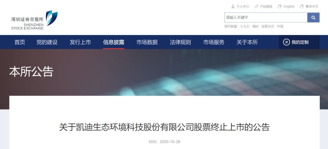 深交所于10月28日发布公告,凯迪生态环境科技股份有限公司(证券代码:000939)因其2019年归属于母公司股东净利润为负、净资产为负、2019年度财务报告被出具无法表示意见的审计报告,2020年10月28日,深交所所决定凯迪生态股票终止上市。凯迪生态也成为了继神雾环保、盛运环保、天翔环境之后,第四个暴雷后第四个退市的环保上市公司。
