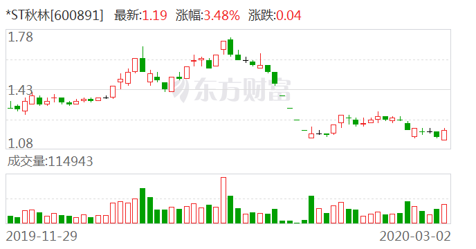 *ST秋林3月11日晚公告称,公司当日收到上交所决定,上交所决定终止公司股票上市。公司股票自2021年3月19日起进入退市整理期交易,退市整理期为30个交易日,公司证券简称将变更为“退市秋林”,预计最后交易日期为4月30日。