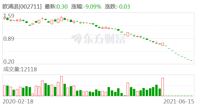 沪深交易所2021年06月15日公布的交易公开信息显示,欧浦退因成为退市整理的证券上榜。欧浦退当日收报0.30元,涨跌幅-9.09%,换手率0.12%,成交额36.35万元。