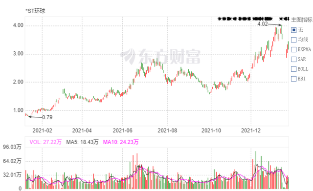 值得一提的是,*ST环球同时预计2021年实现主营业务收入为13494.53万元,因2021年审计报告尚未披露,假设扣除与主营业务无关的业务收入和不具备商业实质的收入后公司营业收入不足1亿元,公司股票可能被终止上市。