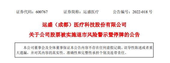 鉴于公司归属于上市公司股东的扣除非经常性损益的净利润为负值且营业收入低于人民币1亿元,根据《上海证券交易所股票上市规则》(2022 年 1 月修订)相关规定,4月27日公司股票停牌1天,4月28日起实施风险警示,实施风险警示后股票价格的日涨跌幅限制为5%,公司股票将在风险警示板交易。
