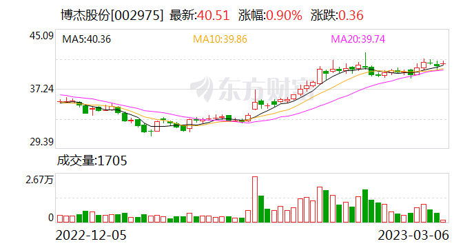 博杰股份2023年3月5日在深交所互动易中披露,截至2023年2月28日公司股东户数为1.54万户,较上期(2023年2月10日)减少591户,减幅为3.69%。