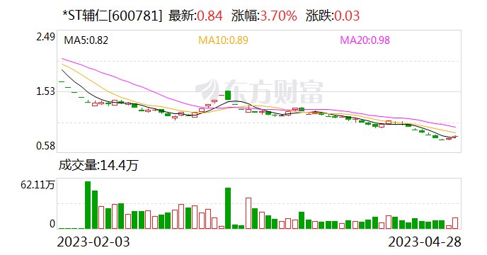 因2021年度财务报告被审计机构出具无法表示意见的审计报告,*ST辅仁股票自2022年7月1日起被实施退市风险警示。2023年4月29日,公司披露了2022年年度报告,显示经审计的期末净资产为负值,且2022年度财务会计报告被审计机构出具无法表示意见的审计报告。