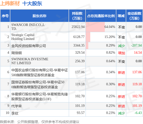 根据上纬新材2023年一季报公布的十大股东详情如下: