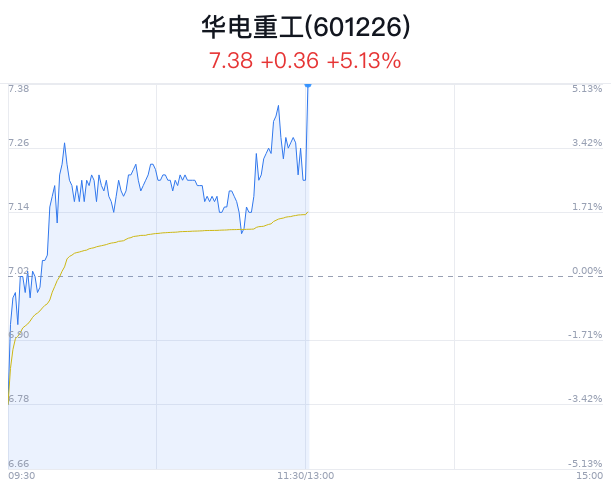 02月29日,华电重工(601226)股价大幅上涨,截至13点00分,华电重工上涨5.13%,报7.38元/股,成交2.23亿元,换手率2.69%,振幅8.69%。