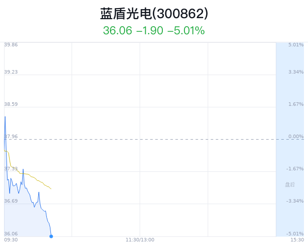 03月04日,蓝盾光电(300862)股价大幅下跌,截至10点11分,蓝盾光电下跌5.03%,报36.05元/股,成交4537万元,换手率0.93%,振幅6.24%。