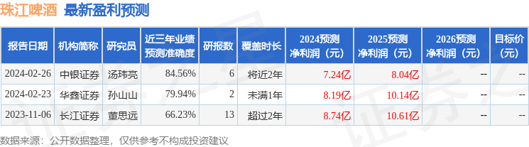 最新盈利预测明细如下: