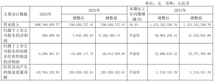 挖贝网4月25日,长春一东 近日发布2023年年度报告,报告期内公司实现营业收入696,189,493.77元,同比增长26.43%;归属于上市公司股东的净利润660,809.50元,较上年同期扭亏为盈。