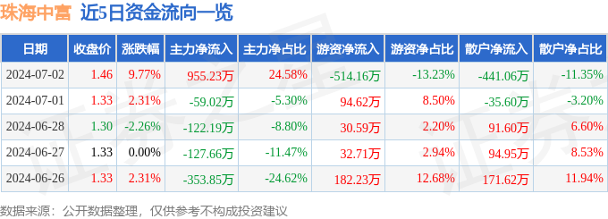 7月2日的资金流向数据方面,主力资金净流入955.23万元,占总成交额24.58%,游资资金净流出514.16万元,占总成交额13.23%,散户资金净流出441.06万元,占总成交额11.35%。