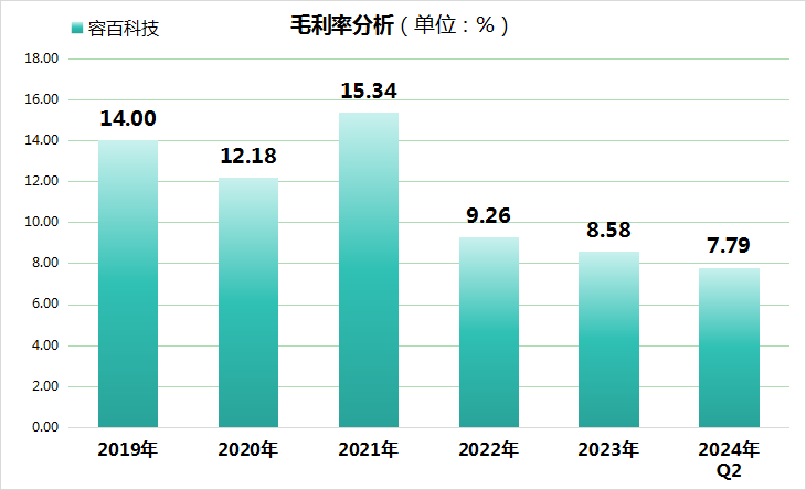 在此背景下,容百科技采取了价格优先策略以争取市场份额,尽管这一策略带动了销量增长――主营产品销量同比增长18.17%,高镍产品销量亦增长16.82%至5.27万吨,但盈利能力却因此受损,毛利率自2021年起持续下滑,容百科技在报告期内毛利率为7.79%,同比下降1.32%;净利率为0.34%,同比下降89.07%;净资产收益率(加权)为0.12%,同比下降97.75%,盈利能力持续下降。