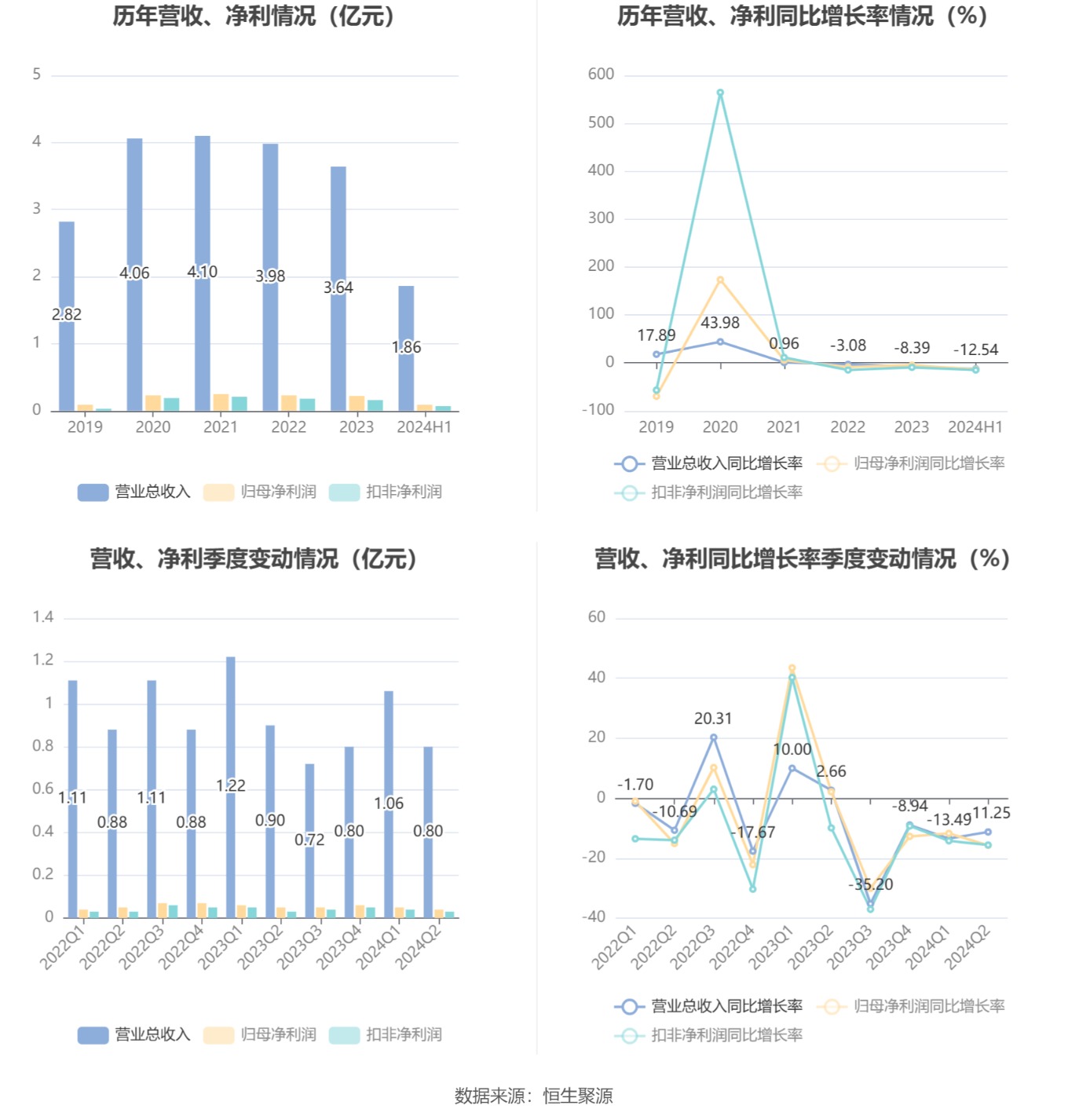 2024年上半年,公司流动比率为3.69,速动比率为2.90。