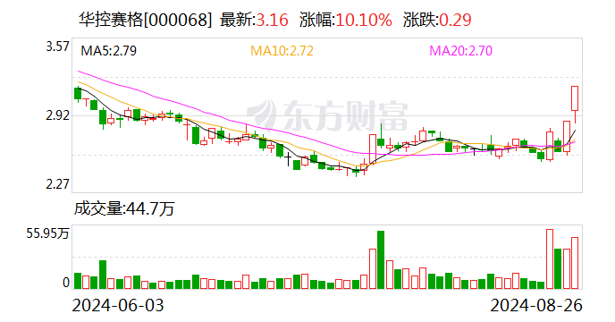 沪深交易所2024年08月26日公布的交易公开信息显示,华控赛格(维权)因成为连续三个交易日内收盘价格涨幅偏离值累计20%上榜。华控赛格当日收报3.16元,涨跌幅10.10%,换手率4.44%,成交额1.35亿元。异常期间08月23日至08月26日,期间涨幅21.07%,累计偏离值20.58%,区间成交额2.35亿元。