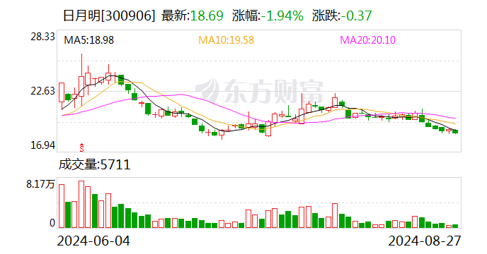 日月明2024年8月28日在半年度报告中披露,截至2024年6月30日公司股东户数为1.07万户,较上期(2024年3月31日)增加789户,增幅达7.97%。