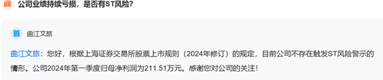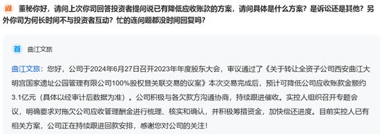 还有投资者质疑曲江文旅巨额应收账款以及持续亏损导致的ST风险: